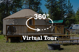 The 16' yurt rentals sleep 5 people and include a bunk bed with full size mattress on bottom bunk and twin size on top plus two sleeping cots.